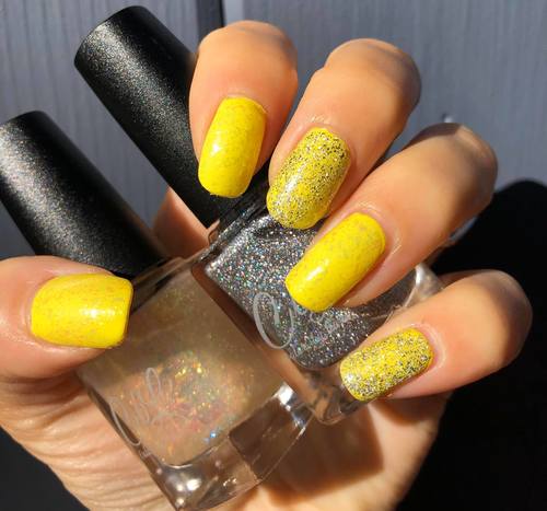 Use a good quality top coat such as CbL PDQ or Smooth Operator to add shine, extend wear time and preserve the holographic effect.